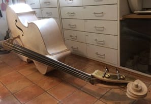 Egy öthúros nagybőgő is készül. Lakkozás előtt felhúroztam, hogy kipróbálhassam. Jól szól. Terveimben nem szerepel több nagybőgő készítése.