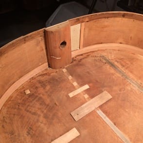Még a karantén idején kezdtem bele ebbe a felújításba. Egy örökségből jutottam hozzá a hangszerhez meglehetősen gyalázatos állapotban. A kávákon körben nyitott repedések, néhol megette a szú.